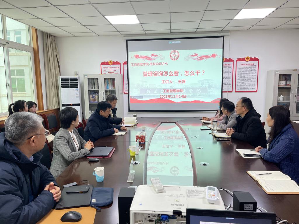 王晋老师是北京和君咨询集团合伙人、河南省和豫三度企业管理咨询有限公司总经理,企业成长与战略落地专家,有12年管理咨询行业/7年丰富企业实操经验,长期跟踪研究河南省产、政、财大趋势,是《河南省上市公司研究发展报告》核心编撰人,深谙专精特新企业、国家“小巨人”企业持续成长逻辑和密码,长期专注企业成长和战略落地,围绕高成长企业战略构建、组织变革,协助企业打造高绩效团队,擅长把产业、区域、企业发展相融合,帮助企业规划并构建发展势能。有山东电力集团企业文化、北京农业投资公司乡村旅游及休闲农业战略制定、内蒙古嘉恒农业科技有限公司上市战略、团队建设、实操辅导和开封市琴异乐器有限公司战略规划、品牌规划、组织变革等数十家成功咨询案例。通过本次交流,王晋老师对我院开展的产教融合驱动应用性科研和课程建设项目、新商科人才培养理念以及在人才培养模式和课程改革方面进行的大胆尝试和探索,表示高度赞赏和深深的敬意,表达了要进行长期、深入合作的意愿。