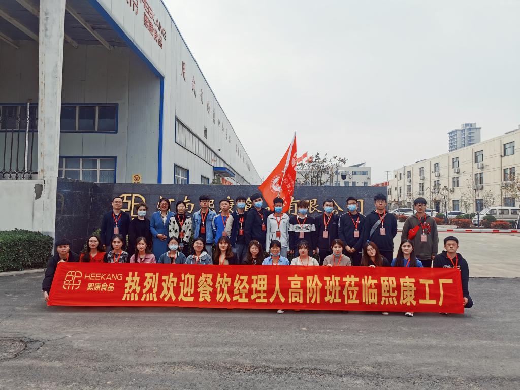 4月22日下午,应姐弟餐饮管理有限公司邀请,我院餐饮经理人高阶班全体成员在周玉洁老师的带领下,到姐弟餐饮工业园——河南煕康食品有限公司进行参观考察。