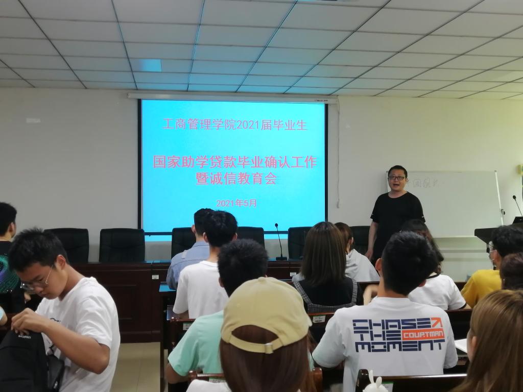 为切实做好工商管理学院2021届毕业生诚信还贷教育工作,帮助学生树立诚信还贷意识,5月12日,我院在227会议室召开2021届毕业生国家助学贷款毕业确认暨诚信教育会,我院部分2021届助学贷款受益毕业生参加了会议。