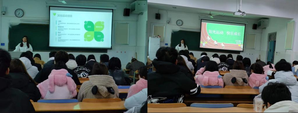 23工商升本01班王梦瑶同学利用视频,介绍并对比近几年大学生体质健康数据,向同学们阐述大学生健康运动的必要性,王梦瑶同学强调运动是良医,每个人需要养成良好的体育锻炼习惯。同学们纷纷表示要积极运动、主动锻炼。